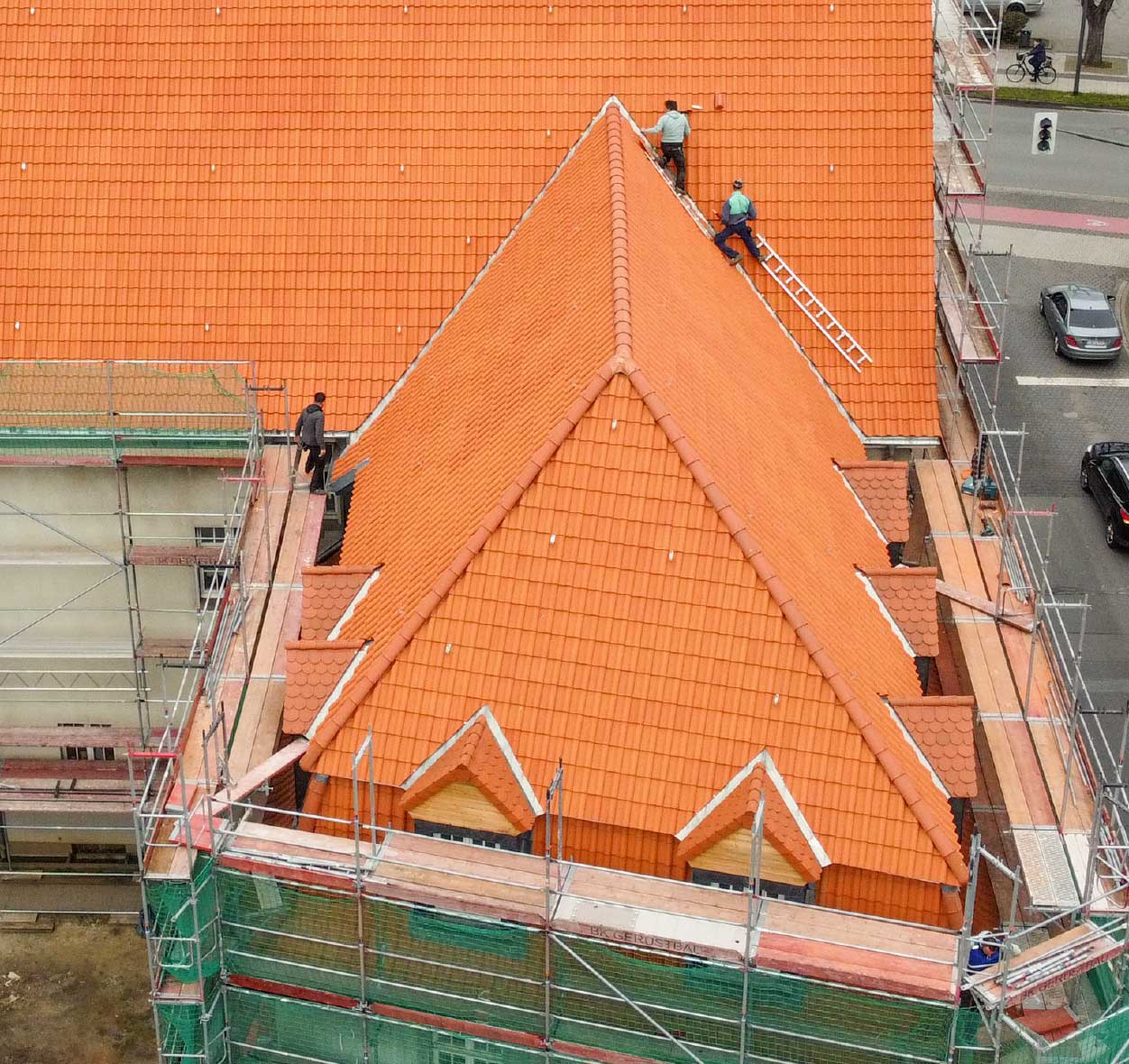 Unsere hochqualifizierten, in die Disziplinen Steildach, Flachdach, Bauunterhaltung und Dachklempnerarbeiten aufgeteilten Mitarbeiter sind der Garant für Sicherheit, Qualität und Termintreue. Allesamt Profis, die die gestellten Anforderungen hinsichtlich der Bauphysik und der Fachregeln des Dachdeckerhandwerks nach den neuesten Erkenntnissen der Technik umsetzen.